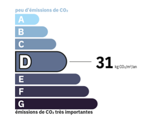 Emission de gaz à effet de serre : 31 kgCO2/m2/an