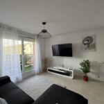 D’une surface agréable et parfaitement agencée, il se compose d’une entrée avec placard intégré, d’une salle de bains avec baignoire, meuble vasque et miroir, de deux chambres lumineuses, d’un salon spacieux avec cuisine ouverte équipée, donnant accès à une porte-fenêtre menant sur un balcon privatif.